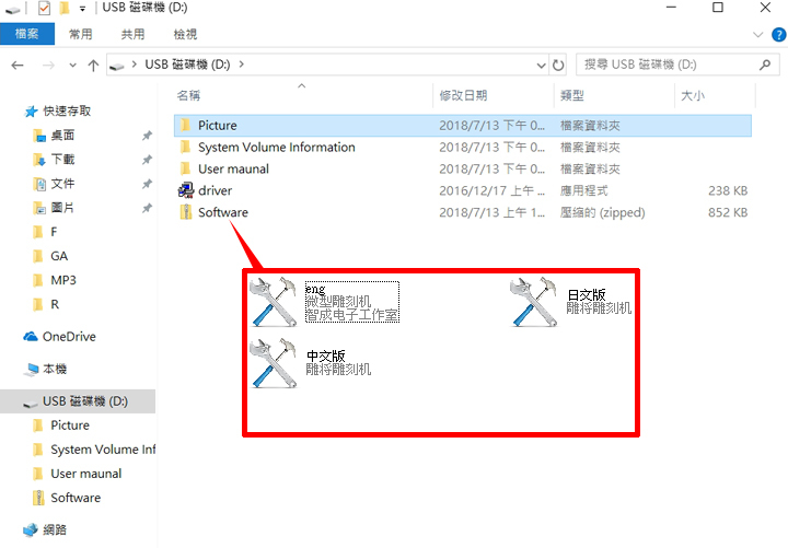 ▲ 隨機搭贈的隨身碟,裡頭有驅動程式與應用軟體、中英日操作說明書、以及內建許多圖庫,但目前只支援WIN XP/WIN 7/WIN 8/WIN 10,聽說即將有支援MAC OS,以及App版本的應用程式。