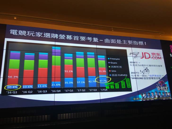 ▲三星的曲面顯示器,在市場上也滿足最挑剔的電競客戶,市場實際採用三星顯示器的網咖也非常多。