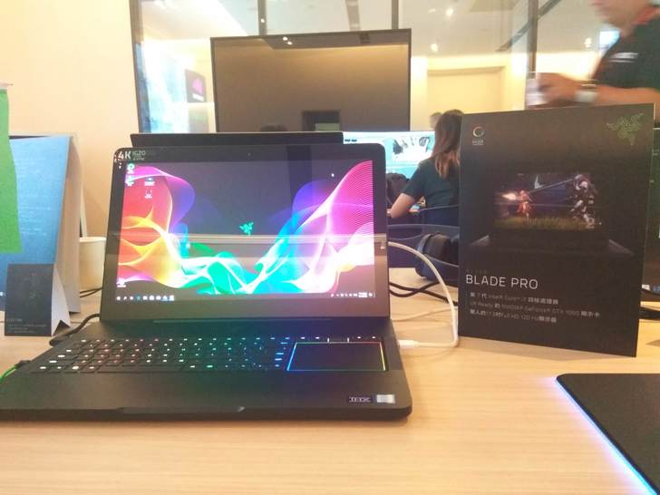 ▲是不是還少了一些東西,原來是不太像週邊的雷蛇筆電,這是BLADE PRO,可以看到觸控盤上閃閃發亮的七彩燈,真炫。