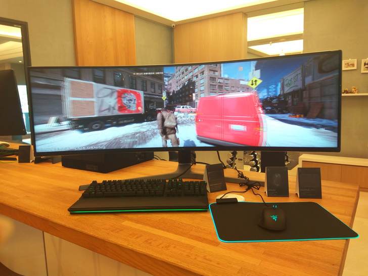 ▲三星的超寬螢幕是不是出場太少了?立馬拿個吃雞電玩感受一下曲面超寬的震撼。