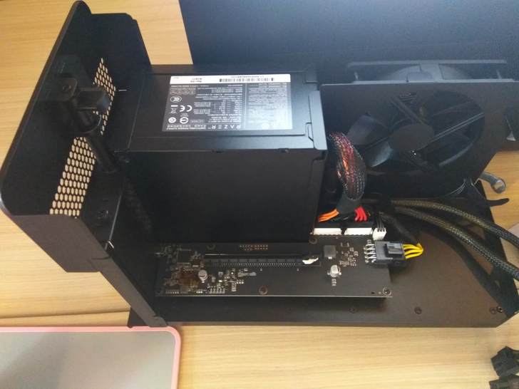 ▲可以看到大部份的空間被電源佔走了,可見電力絕對足夠供給顯示卡與筆電。