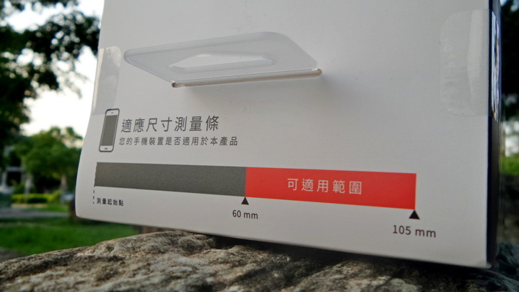 【▼】頂部的吊卡處印有適應尺寸測量條,紅色部份(60~105mm)是可適用範圍,低於60mm或超過105mm可就不試用了。