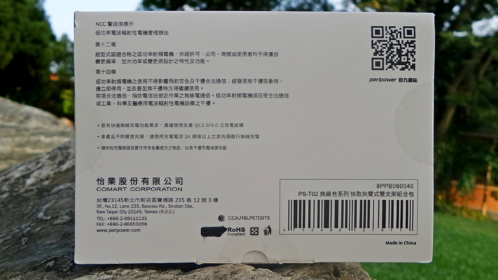 【▼】由於牽涉到無線,所以偉大的NCC又跳出來了,PS-T02有通過NCC認證,字號為CCAJ18LP07D0T5,本產品不附贈旅充頭,所以使用時請用充電電流2A以上旅(座、車)充進行QC2.0/3.0裝置的快充。