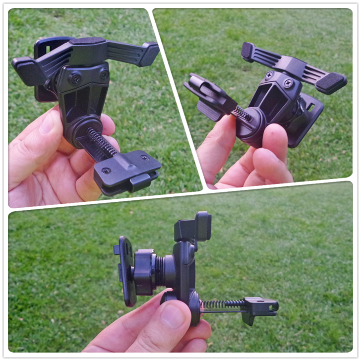 【▼】接著向上是扣緊,反之,向下即可退出整個支架,對於可360度旋轉的萬向球頭可調整適當角度後鎖緊。