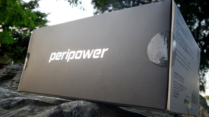 【▼】包裝彩盒側邊印有黑底銀白色字體的peripower,閃閃發亮令人眼睛一亮。