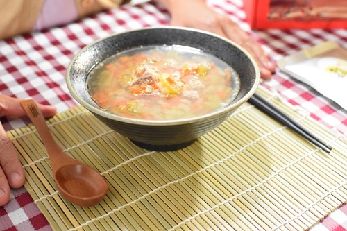 『減肥蔬菜湯』在湯品調理過程中加入滴雞精來加強營養,這部分其實在日常烹調當中沒有含有肉類的菜色都可加入滴雞精來增添菜色風味香氣,對於想瘦身又怕胖的人很適合拿來入菜食用喔!!