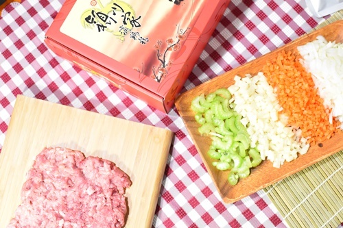 紅蘿蔔1支、芹菜1小把、馬鈴薯1顆、絞肉約150g、洋蔥1顆、滴雞精1包