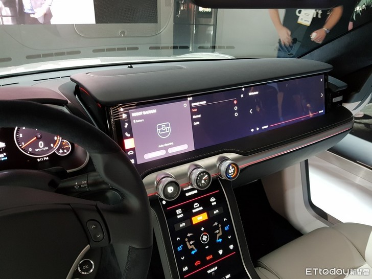 中央螢幕,整合儀表組與中控台,駕駛者可獲得重要車輛資訊,此平台支援多重模式,能與不同的人機介面互動,實現HVAC、媒體和使用者設定的客製化。後照鏡可以清楚辨識是人、車子還是物體,前方方面板在升降之後,可以允許副駕駛座的人進行手機應用程式投影。