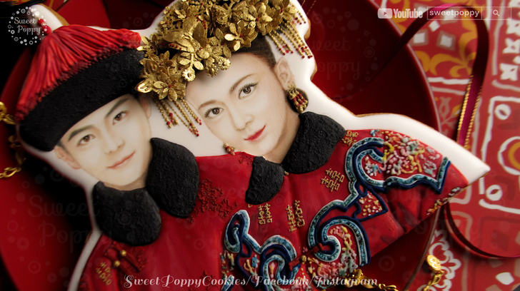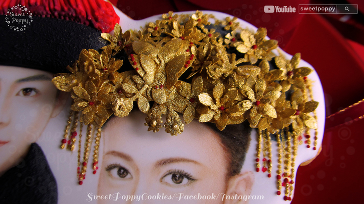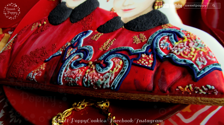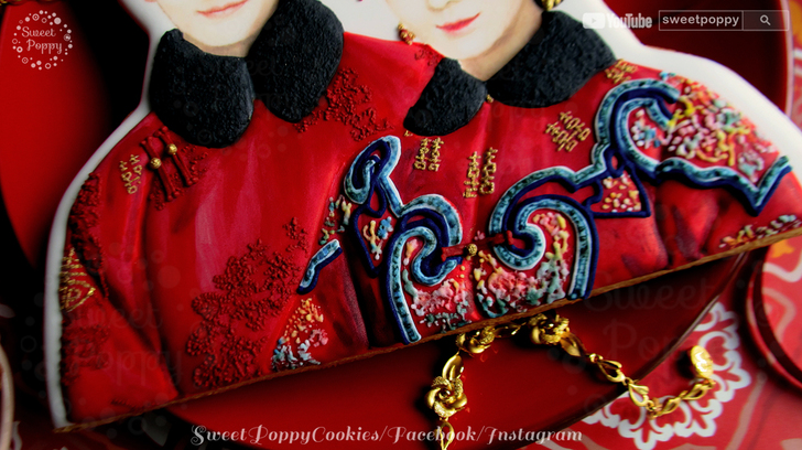 像囍服很繁複,用糖霜畫出刺繡,再彩繪加強繡花細緻度。