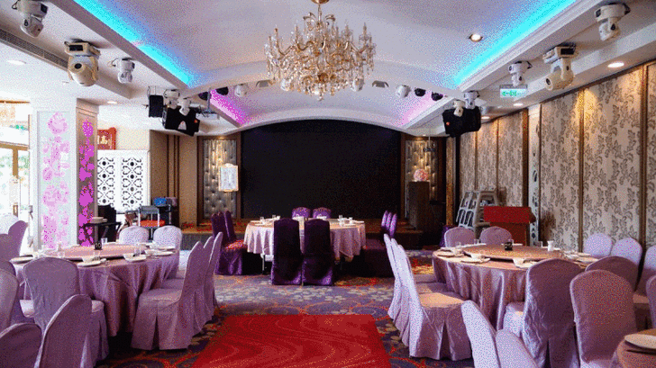 一樓分為兩個宴會廳,每個廳都可以容納20幾桌,二樓則是維多利亞大宴會廳,可以容納40-49桌,我們一進門所在的位置是最小的宴會廳,雖然是三個宴會廳之中最小的,但是依舊很氣派。