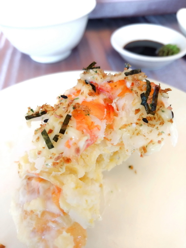 舀起一杓明蝦沙律,沙律就是沙拉啦,沙律上面的蝦肉緊實,新鮮好吃,搭配很多的沙拉醬,我很愛吃呢,如果有麵包的話,夾成沙拉麵包可是一等一的好吃呢。