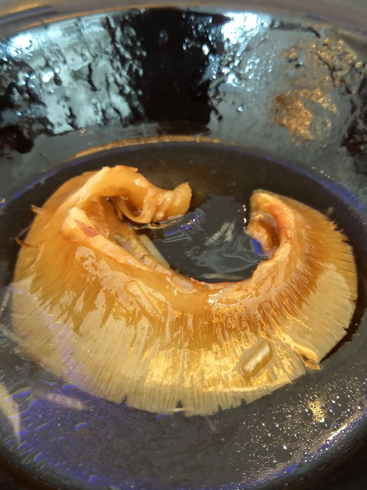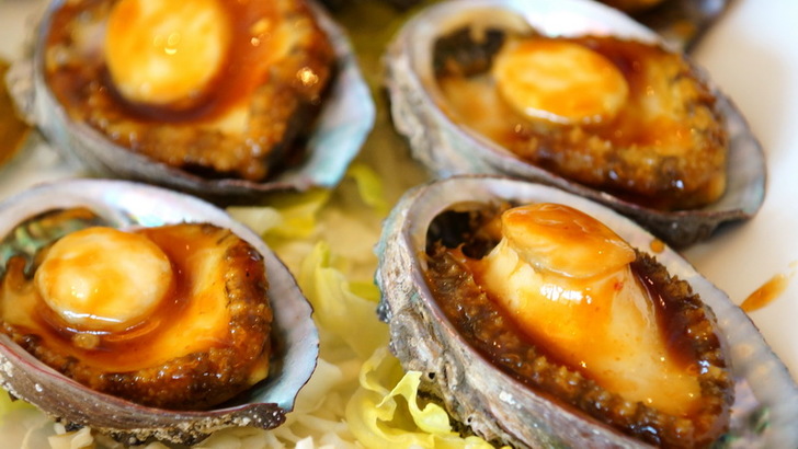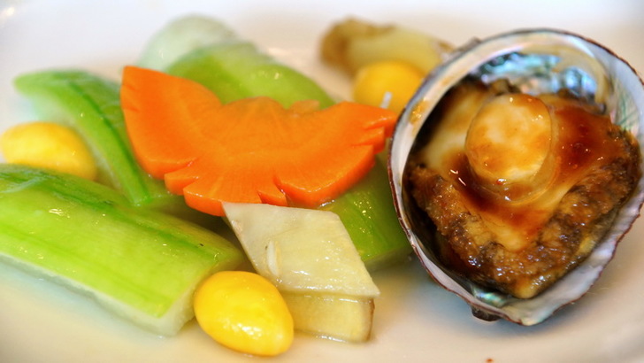 關於九孔鮑的部份我只能說,新鮮的跟冷凍過的就是不一樣,今天吃到的九孔鮑肉質很Q彈,不會硬到咬不動,連老人家都能輕鬆入口。我這個鄉巴佬之前從沒留意過九孔是否真的有九個孔,真的耶,九孔的殼真的有九個孔耶。