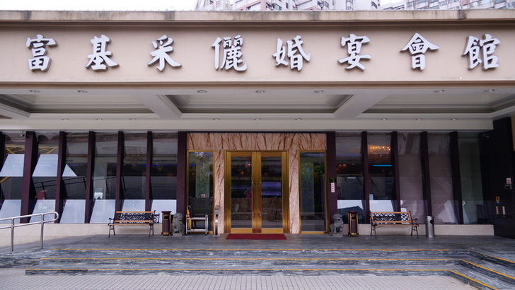 這就是富基采儷婚宴會館的大門啦,老實說白天沒有點燈,門面看起來還好,但是內部裝潢其實蠻不錯的耶。