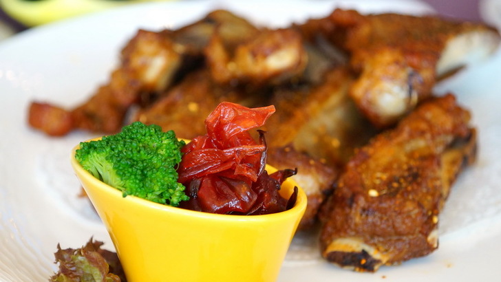 這道菜與前面的菜色相較之下,口味算是比較重的,肋排醃漬入味,肉質結實卻不硬,一人有一隻,老實說直接拿起來啃比較方便,搭配酸甜的洛神花蜜餞,完全沒有油膩感啊,對於無肉不歡的我,這道菜真的好吃。