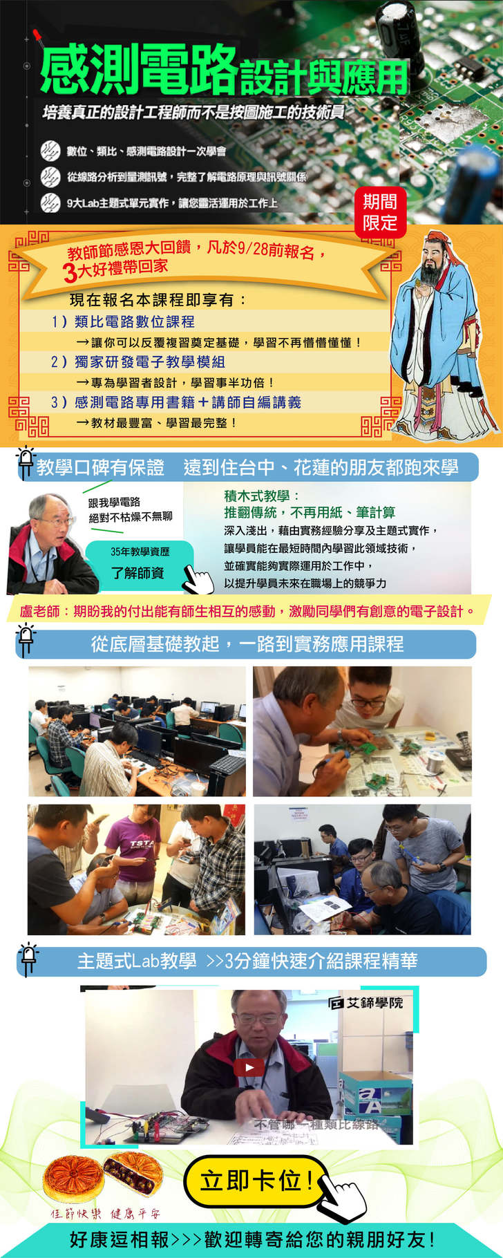 [情報] 感測時代!拯救你的電子電路觀念,再享3大好禮 科技 · Jyun · 發表於 2018-09-25 15:34 · · 檢舉 列印版 twitter plurk 3.8千閱讀次數 臺北市中正區重慶南路一段143號4樓 營業時間:9:00~21:00 │ 週三、六、日9:00~18:00 客服電話:(02)2316-7736 客服信箱:service@ittraining.com.tw 了解更多 http://bit.ly/2OOZ8fX 讚 收藏 快速回應 引言回應 登入來回應 header home