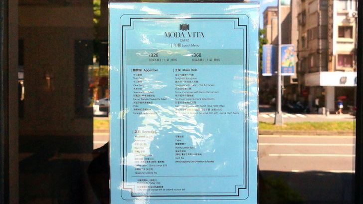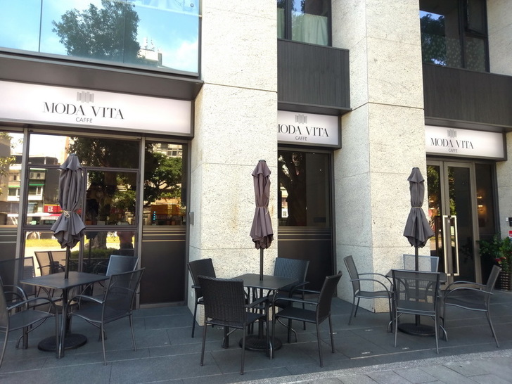 大樓很新,相較於旁邊的舊房子非常的顯眼,但是Moda Vita Caffè義式餐廳隱身在大樓的一樓卻非常的低調,不仔細停下腳步仔細看看的話,很難察覺這是一家義式餐廳,我每次都匆匆經過這家餐廳,卻一直忽略他的存在。(我一直以為是間精品店或者洋酒貿易商之類的)