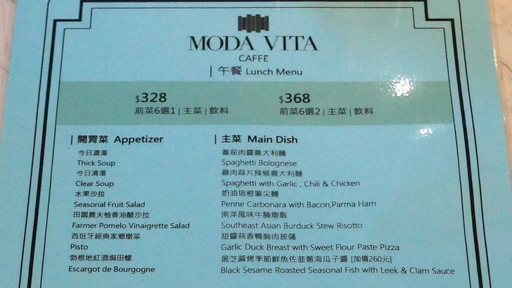 維克多搬到淡水快15年了,雖然已經熟悉淡水的環境,但是淡水沒有百貨公司啊,如果想要壓馬路,逛百貨公司,最快的方法就是搭淡水信義線到芝山站,這裡有SOGO百貨天母店,嚴格來說,芝山捷運站附近的美食我大都已經吃過了,在這麼多餐廳之中,我大都是挑中式餐廳來吃,但是我真的想分享位在芝山捷運站的義式餐廳,Moda Vita Caffè義式餐廳。因為他們的午間套餐不但價格平實,而且價格也不貴,重點是份量不小而且美味,是我最近吃到令人相當滿意的一餐。