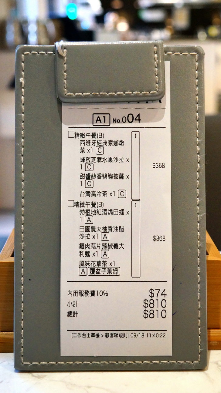 而且平日中午的套餐價格也不貴,在天母這種寸土寸金的地方,又在芝山捷運站旁,一個完整的雙開胃菜午間套餐加上服務費才368*1.1=405元。