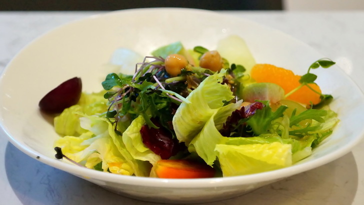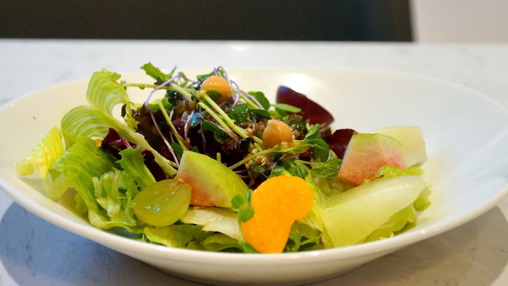 除了新鮮的生菜之外,顧名思義上面還有不少水果,蕃茄,雙色葡萄,哈密瓜,紅心芭樂,雪蓮子與橘子。