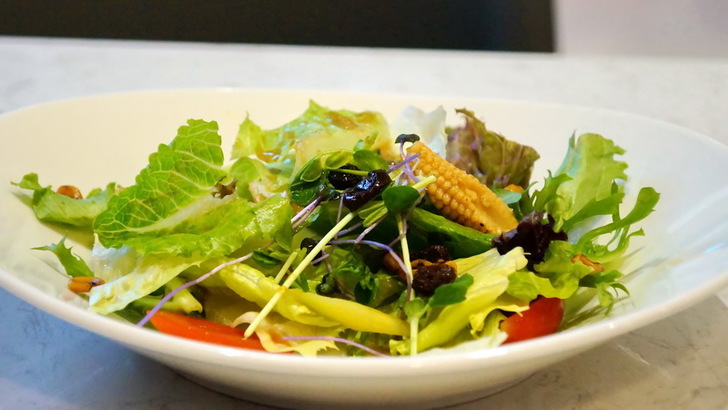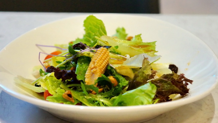 乍看之下,與我的水果沙拉看起來差不多,但是這一盤沙拉裡少了上面所說的水果,但是多了玉米筍,葡萄乾與玉米粒。