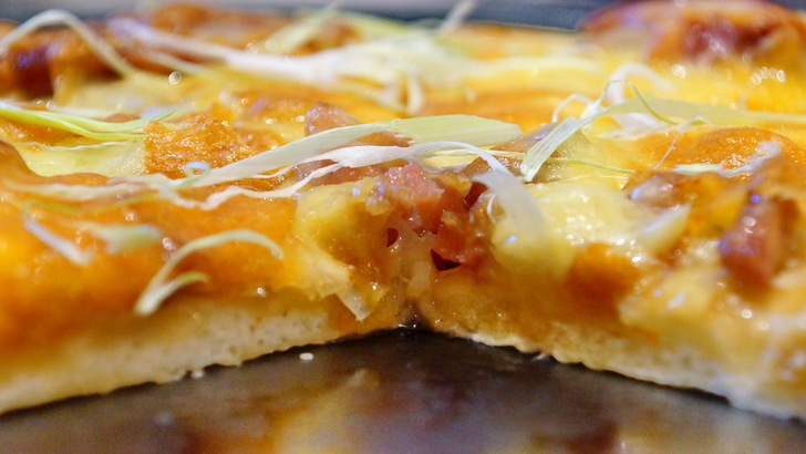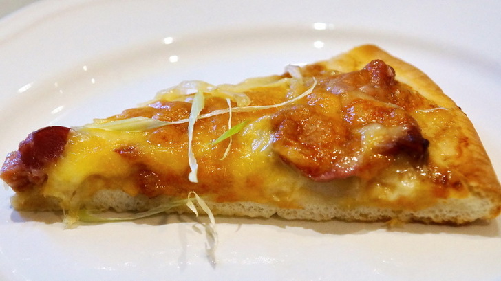 除此之外,披薩的麵皮扎實,不會過於蓬鬆,吃起來有飽足感,此外起司/醬料與麵皮的厚度是很大氣的接近一比一,所以披薩一口咬下,你吃得到香嫩多汁的鴨胸肉,畫龍點睛的蔥白,鹹甜鹹甜的照燒醬汁,香氣十足的起司還有扎實有飽足感的麵皮。