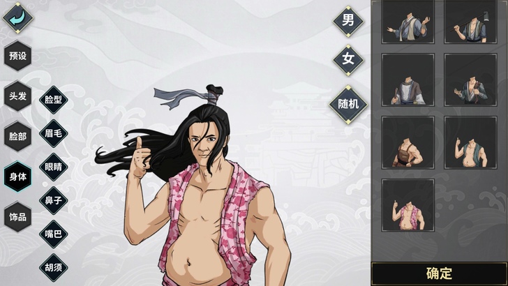 一開始就是系統預設的樣子,如果你懶得自己捏臉,又怕自己搭配起來很突兀,一直點預設他就會給你不同造型的人物,隨機搭配,任君挑選