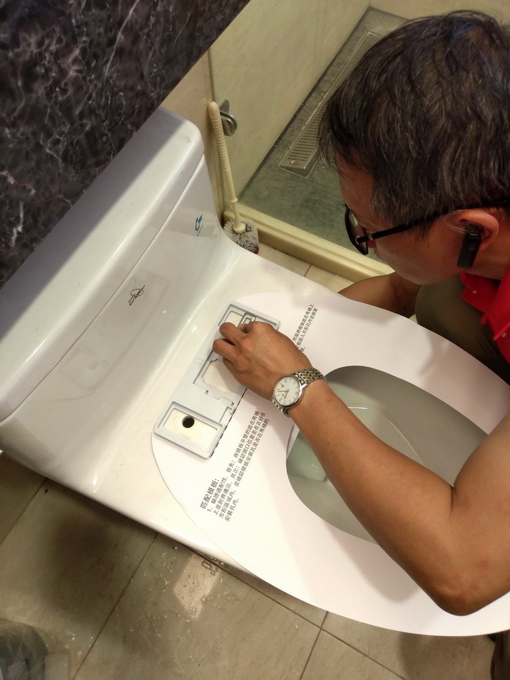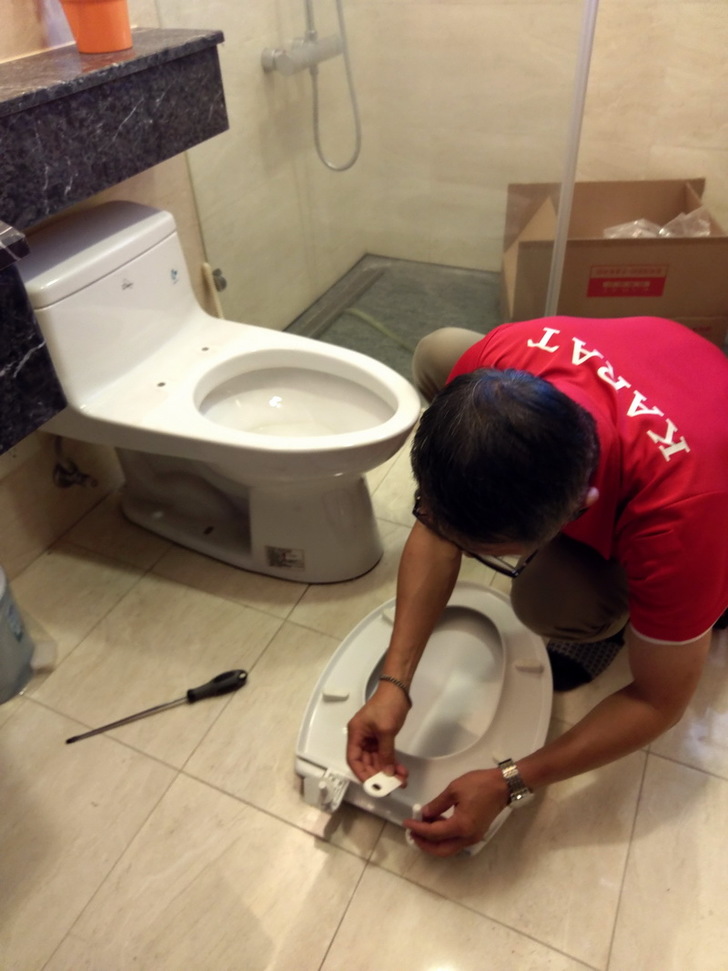 我家的馬桶尺寸是W433xD722xH595mm,馬桶蓋螺絲孔距140mm,符合KARAT凱樂衛浴的電腦馬桶座的安裝需求,既然符合安裝標準,那就安心的請師傅來安裝吧。