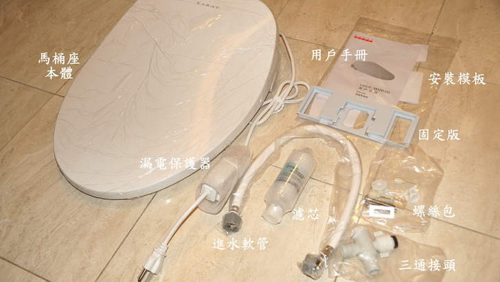 這就是KARAT凱樂衛浴的KW-206超薄型瞬熱式電腦馬桶座的所有部件了。