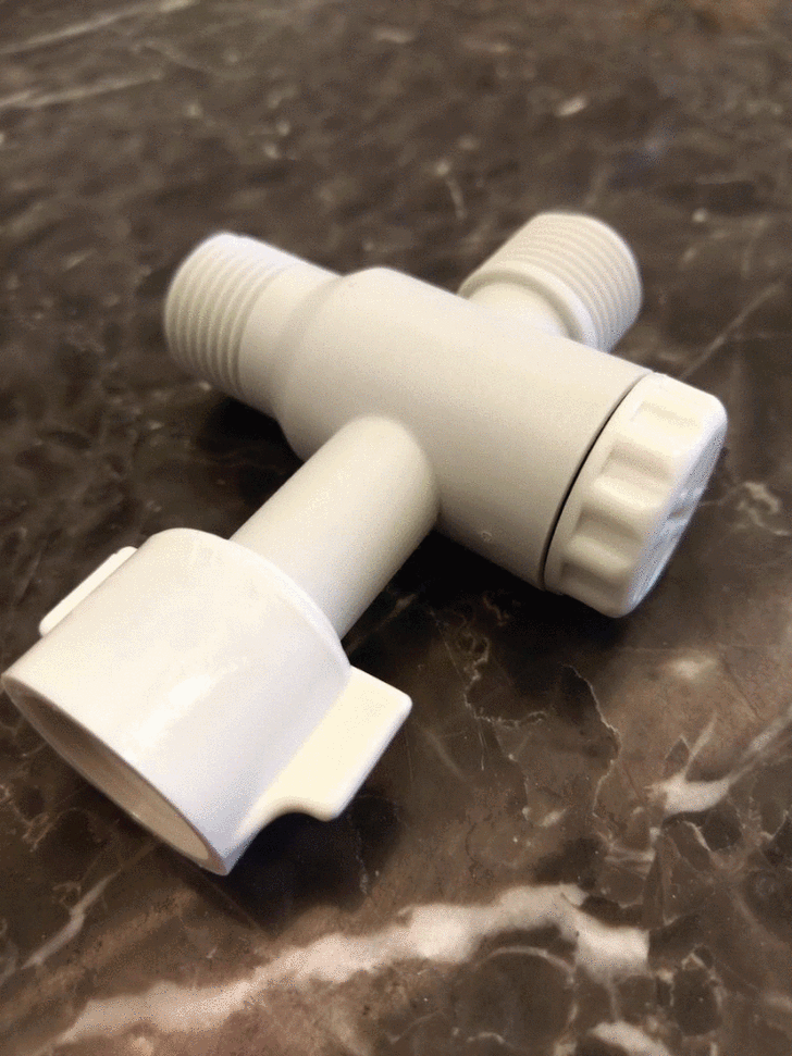 此外順便介紹三通接頭,現在新的三通接頭裡面也有個簡單的濾網,比較大的砂石可以在此濾掉,延長濾芯的壽命。
