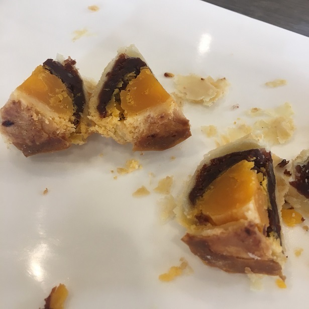 蛋黃很大顆呢 ! 一口吃下去發現裡面的紅豆餡也很濃郁