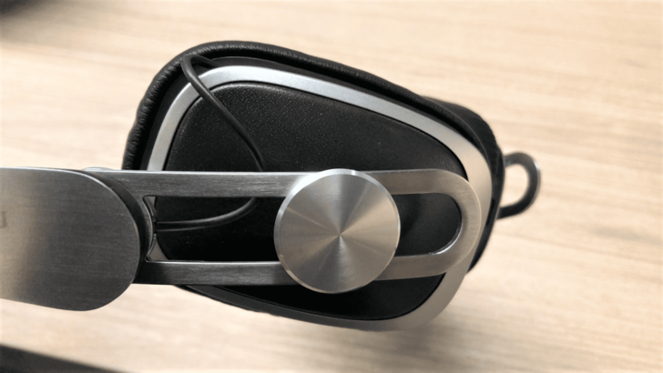 為了適應各種頭型,並讓使用者輕鬆調整到自己想要的位置,採用了可動關節設計,上面並無刻度,除了讓外型更加美型,據說也是希望消費者在調整上能不被刻度拘束,留給消費者很高的自由度 (強迫症患者如我,好想要刻度啊) 。耳罩角度也是可以些微調整。