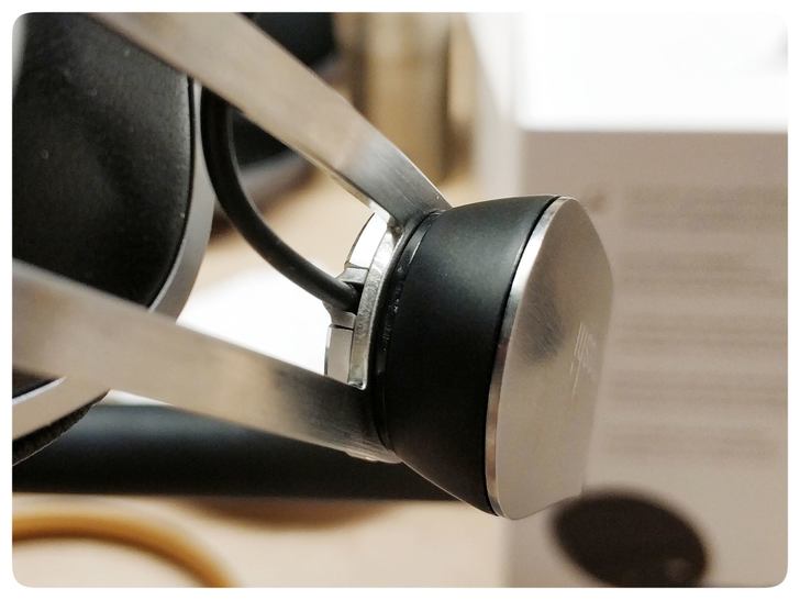耳罩採用了 Vegan 環保皮革,不管是配戴的舒適性、耐用度與環保都有考量。這種造型的耳罩是我第一次見到,剛開始我還有點擔心 Avanti Air 會不會有罩不住耳朵的問題,實際戴上之後才發現因為採用了不銹鋼頭架的設計頭架本身會提供一定程度的力量使耳罩服貼耳朵(同時也有被動降噪的效果)