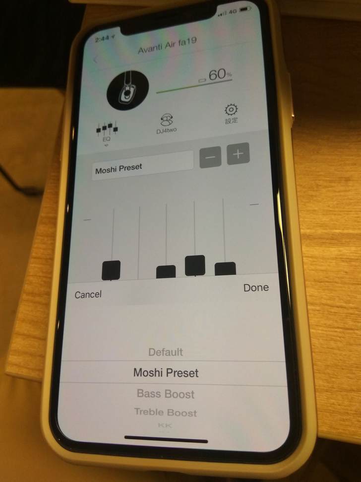 ▲重點來了,Moshi Avanti Air可在APP去調整EQ,若覺得預設的調音,沒有自已想要的味道,可以自行調整。這是Moshi Preset設定,低音、空間感略增。