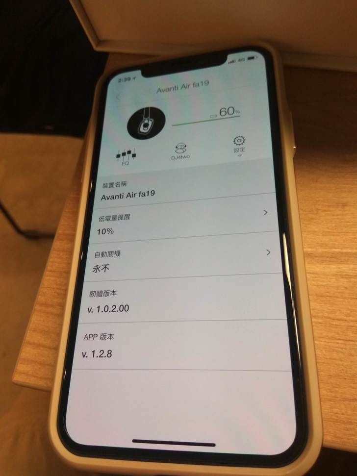 ▲進入畫面後,可看到Moshi Avanti Air的基本資訊,如電量、自動關機等設定,而且Moshi Avanti Air是可線上更新韌體的,算是會升級的耳機。