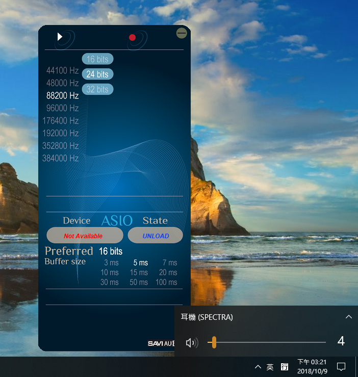 ▲接上Spectra X,即可看到聲音輸出已變成為Spectra X,還會有一個控制程式。千萬記得要先調低音量,以免聲音過大。