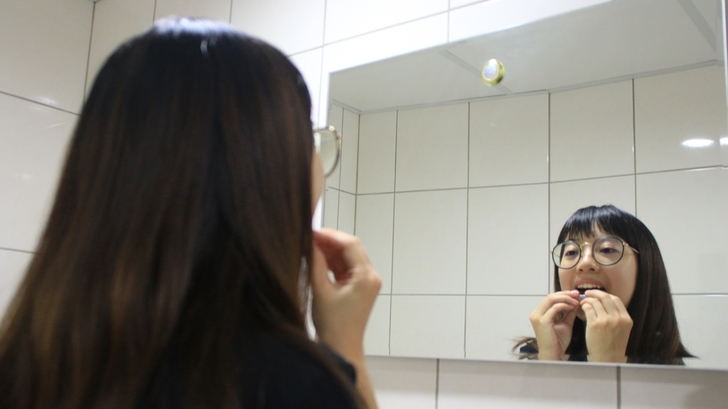 一邊教還一邊說做睡眠美白前牙縫裡面一些細微殘渣需要清理很乾淨