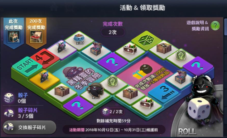 介面是不是很可愛啊!?只要在遊戲中,遊玩1小時,就能獲得1個骰子,每日最多可以獲得2個;在遊戲中狩獵怪物能獲得骰子碎片,5個碎片可以交換1個骰子喔!一起來收集骰子試試手氣吧!