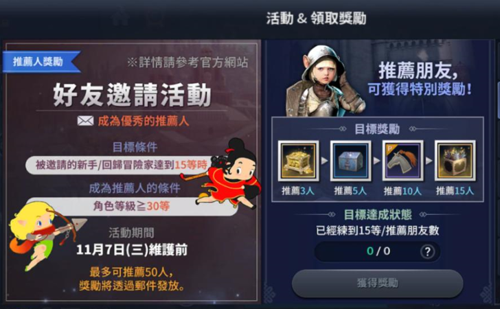 最後,如果覺得黑沙不錯玩,可邀請好友們一同來體驗,一同破關,結伴一起讓遊戲更好玩。那就別忘了能參加這個:好友邀請活動,在好友達成條件的當下,就能獲得獎勵喔!