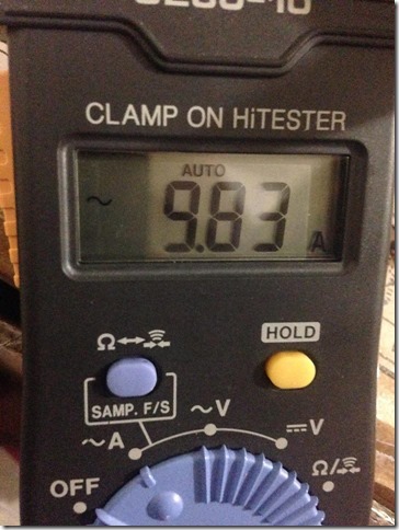 ▲礦機設備:AMD RX 570 / 580 8GB 顯示卡 x 6 卡機,以勾表測量實際耗電總安培數,6 卡機落在 9.83A (功耗 700W 上下)距離 DSP-W115 額訂 15A 還算錯錯有餘!試過最大極限 10卡 AMD RX570 8GB 直逼 15A 大關!算是十分吃緊,強烈建議「安全為上」!理想安全值落在 9卡 AMD RX 570 / 580 8GB 左右較為穩定安全,才不會超過 DSP-W115 額訂最大峰值,如果因為個人惡操造成故障,原廠可是不予以保固的喔!!