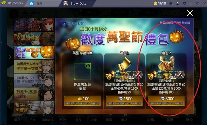 第一個要買的就是3000鑽的萬聖節禮包。