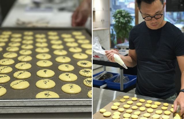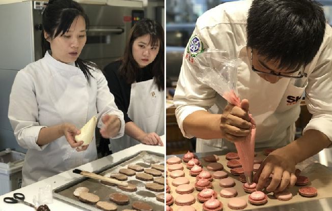 大家正在認真檢查每個馬卡龍有沒有需要修剪
