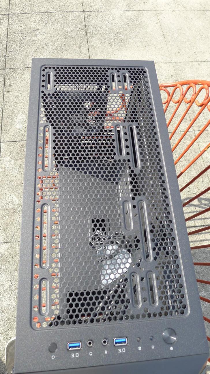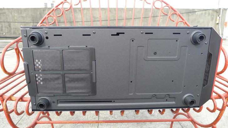 ▼頂部有I/O配置,雙USB3.0也是其特色之一,磁吸式濾網整面覆蓋,底下可以安裝風扇