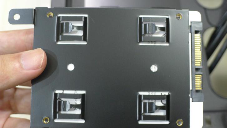 ▼2.5吋硬碟架孔位精準,扣壓在後側固定也很穩