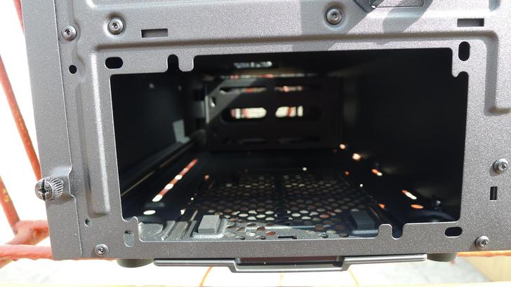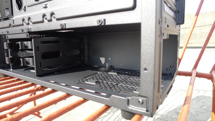 ▼為了把電源線材空間清出來所以試著將3.5吋硬碟架往前方移一格,若是有需要安裝水冷排者則不須移動