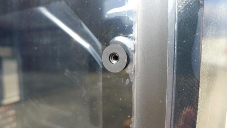 ▼玻璃面板很有重量,螺絲固定處前後都有墊片