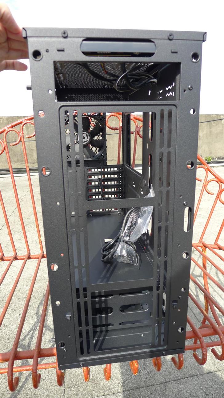 ▼側面背部可以看到2.5和3.5吋的硬碟架,可容納電源的空間很大,電源放置處底部有用海綿稍微墊高,以免安裝電源時傷到表面