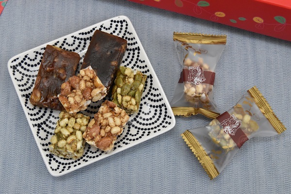 像是最左邊彩色的是巧果系列,左邊第二個適核桃糕的口味