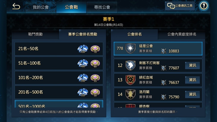 (有好的公會,公會戰排名也會成為一個重要收入的來源,但是排名靠前的公會肯定也對於戰力會有一定的要求就是了)