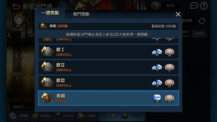 (新星決鬥場一樣每周也有獎勵,只是獎勵沒有一般的決鬥場好)