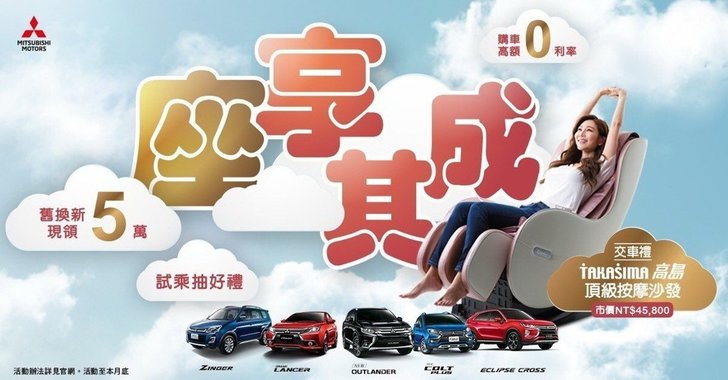中華三菱座享其成,11月買車送您TAKASIMA高島頂級按摩沙發。
